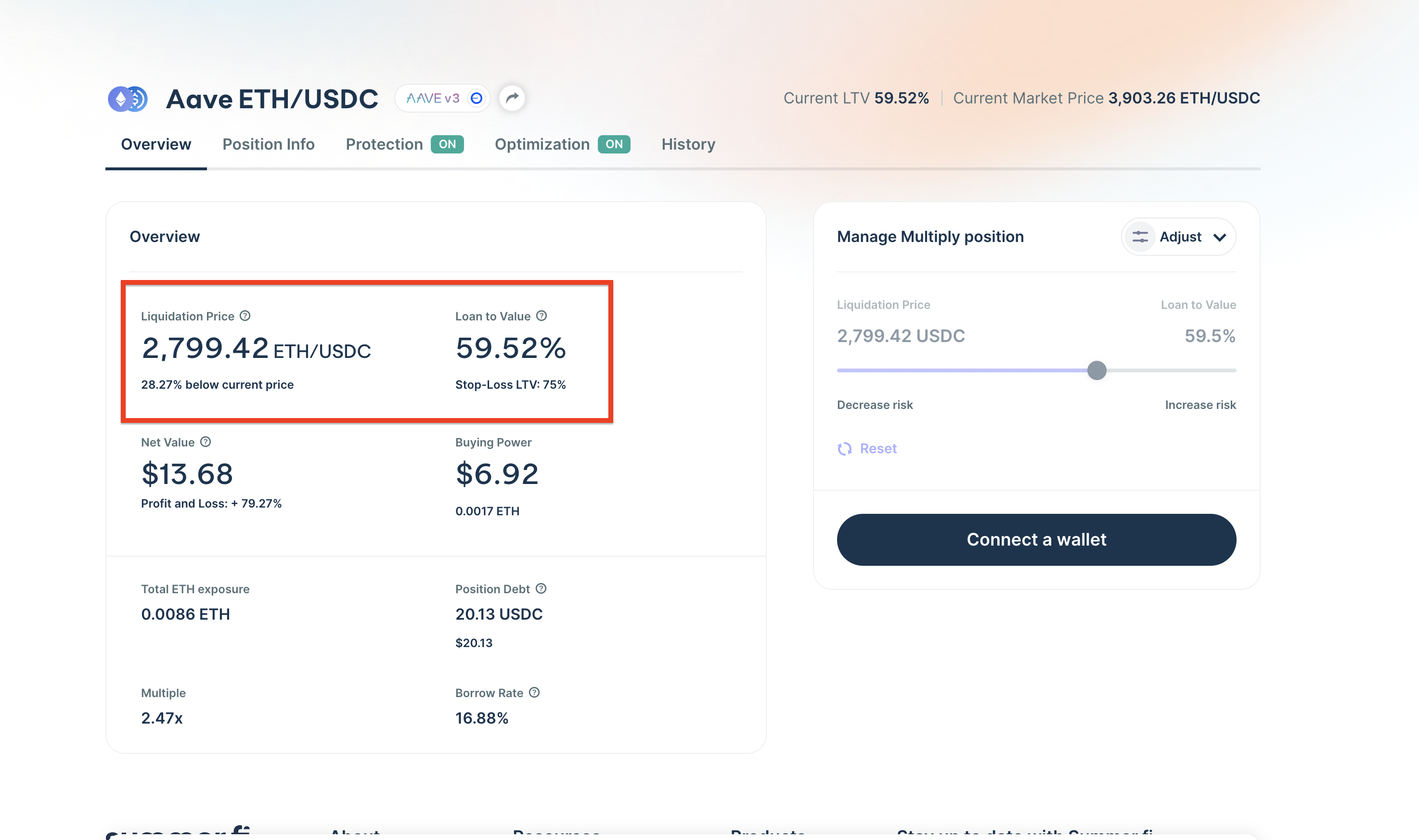 * Stop Loss LTV - The LTV that once reached your position will be closed.