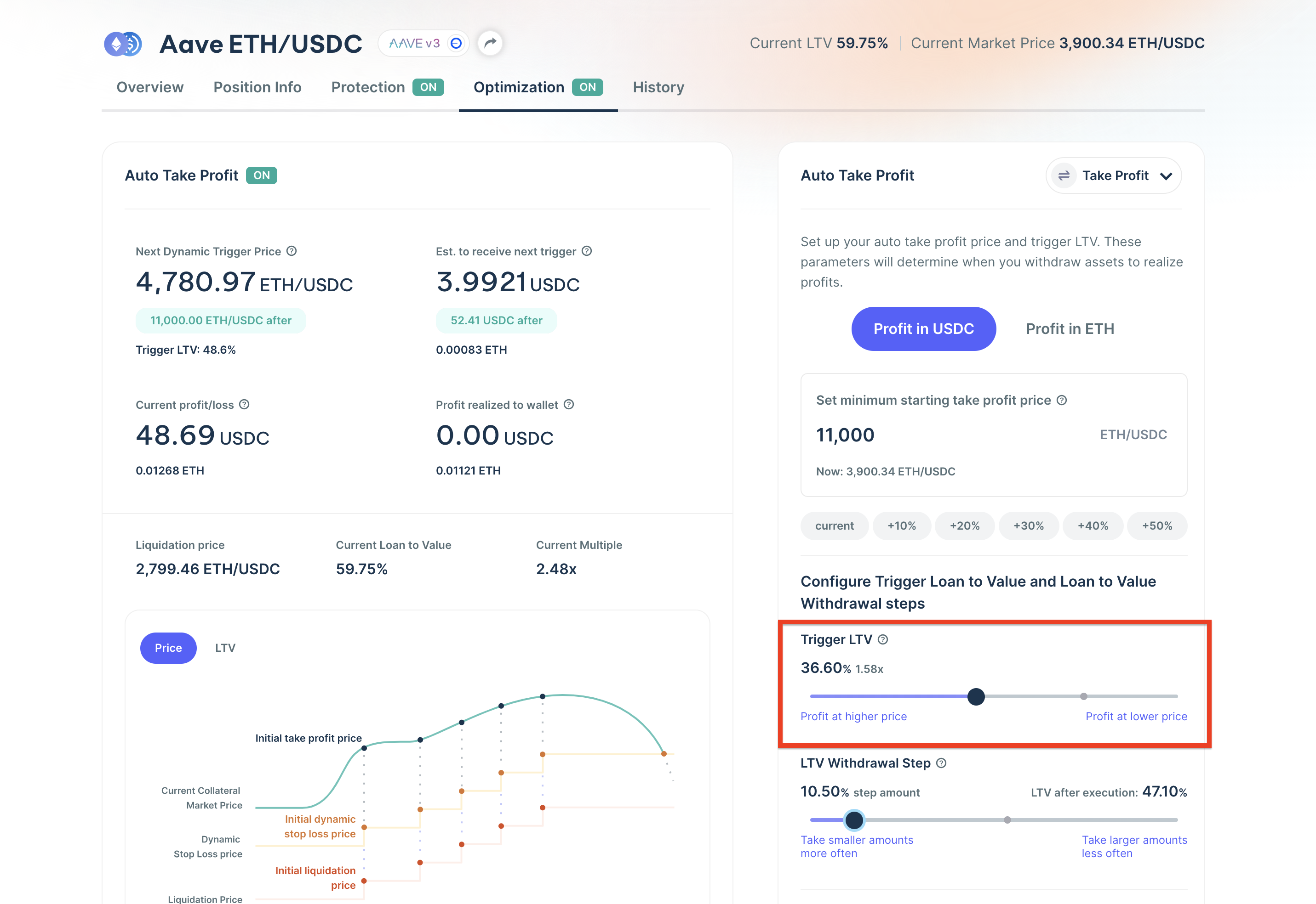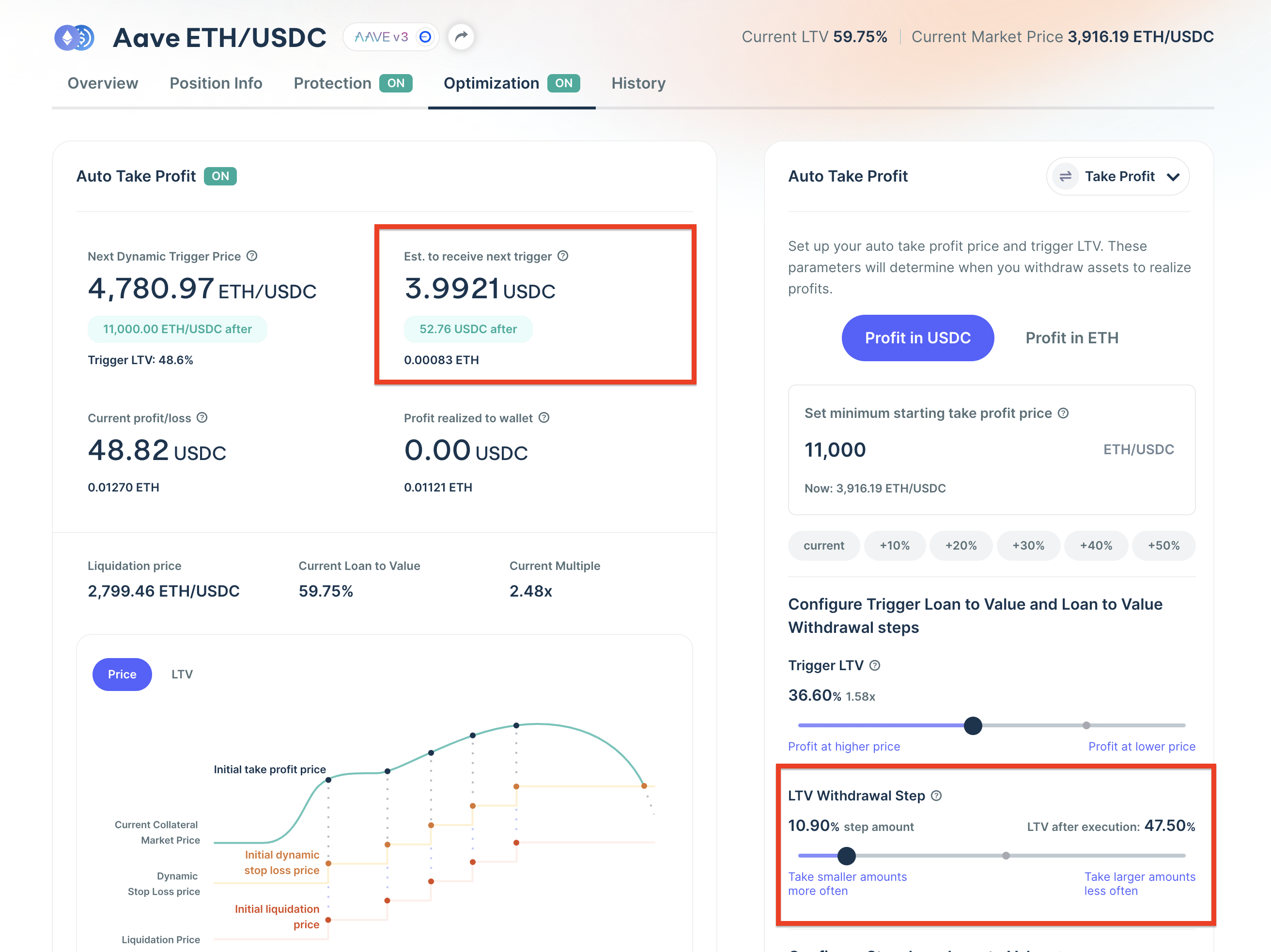 * *Withdrawal step - The distance between your trigger LTV and LTV after execution that determines your amount of profit realized.*