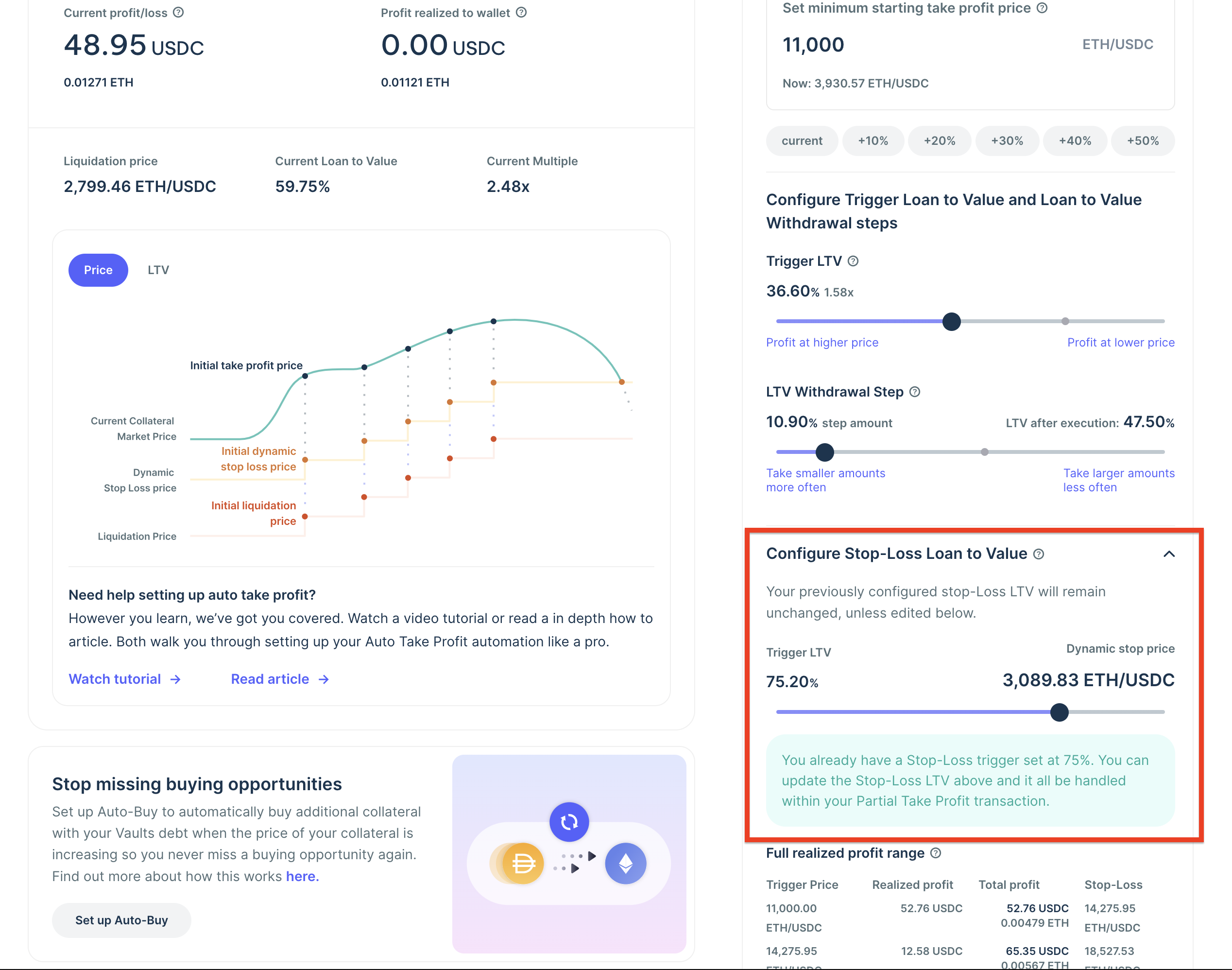 #### Step 7 - Configure or double check your Stop Loss LTV
