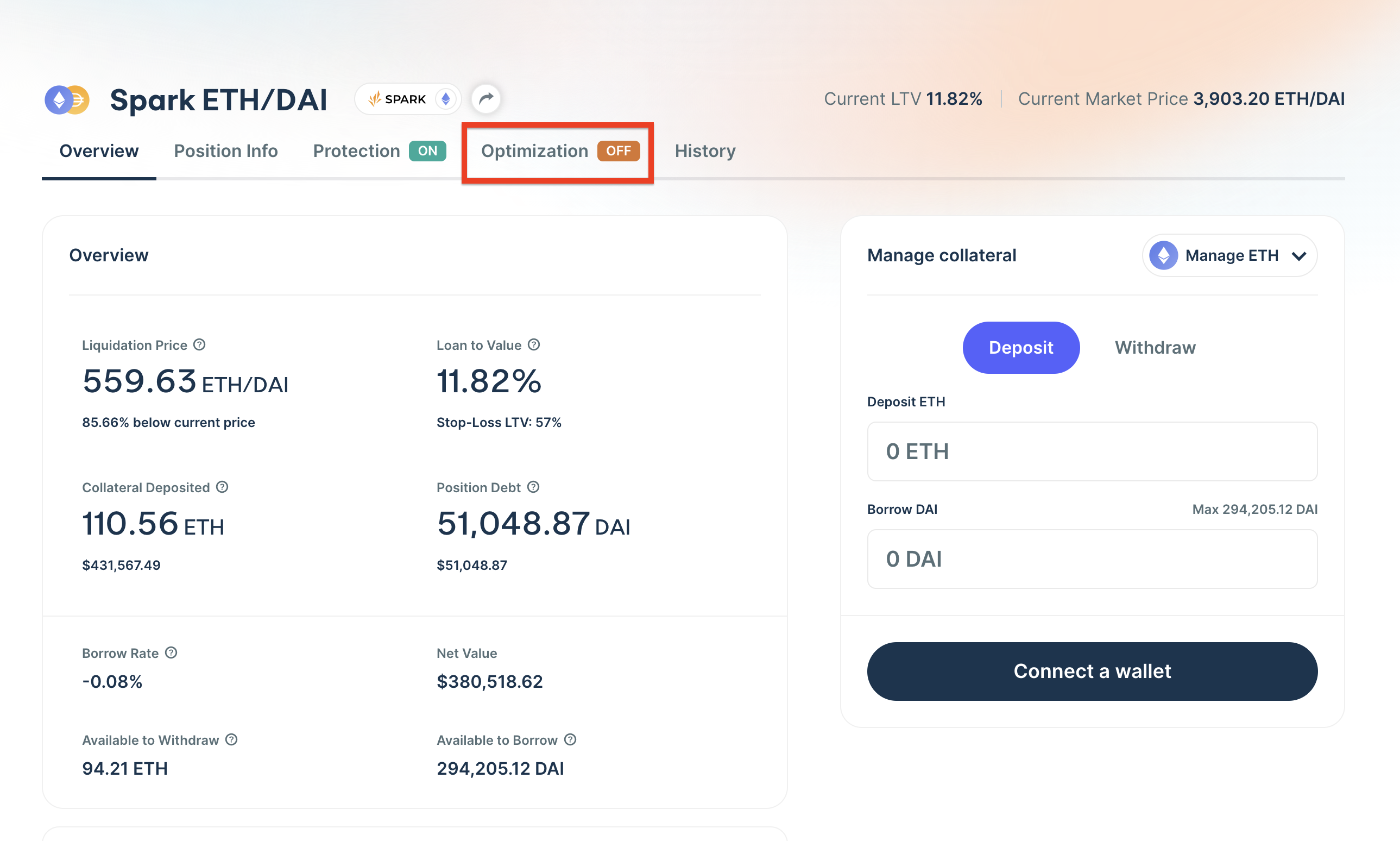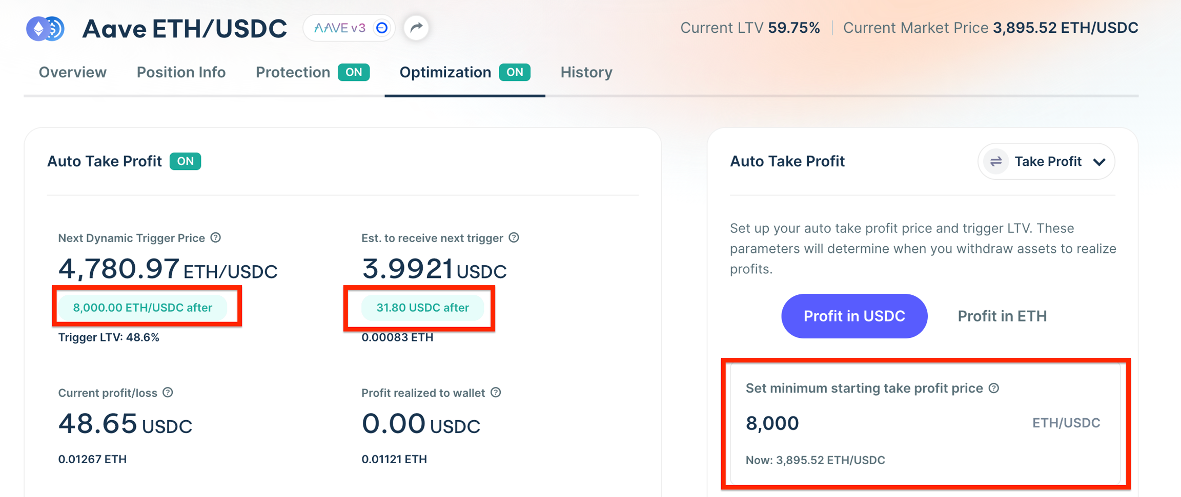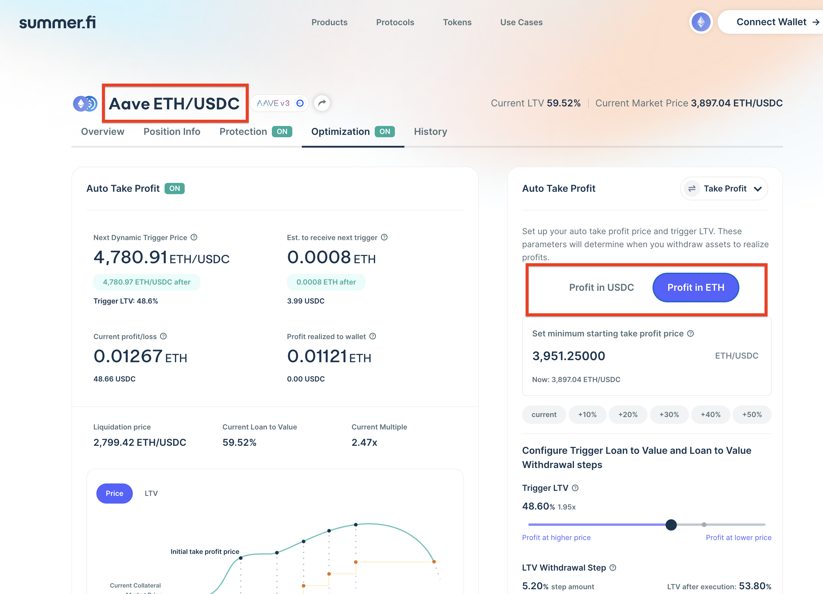 Once you have that foundation, simply click on the “Optimization tab” of your position and select the “Auto Take Profit” card.