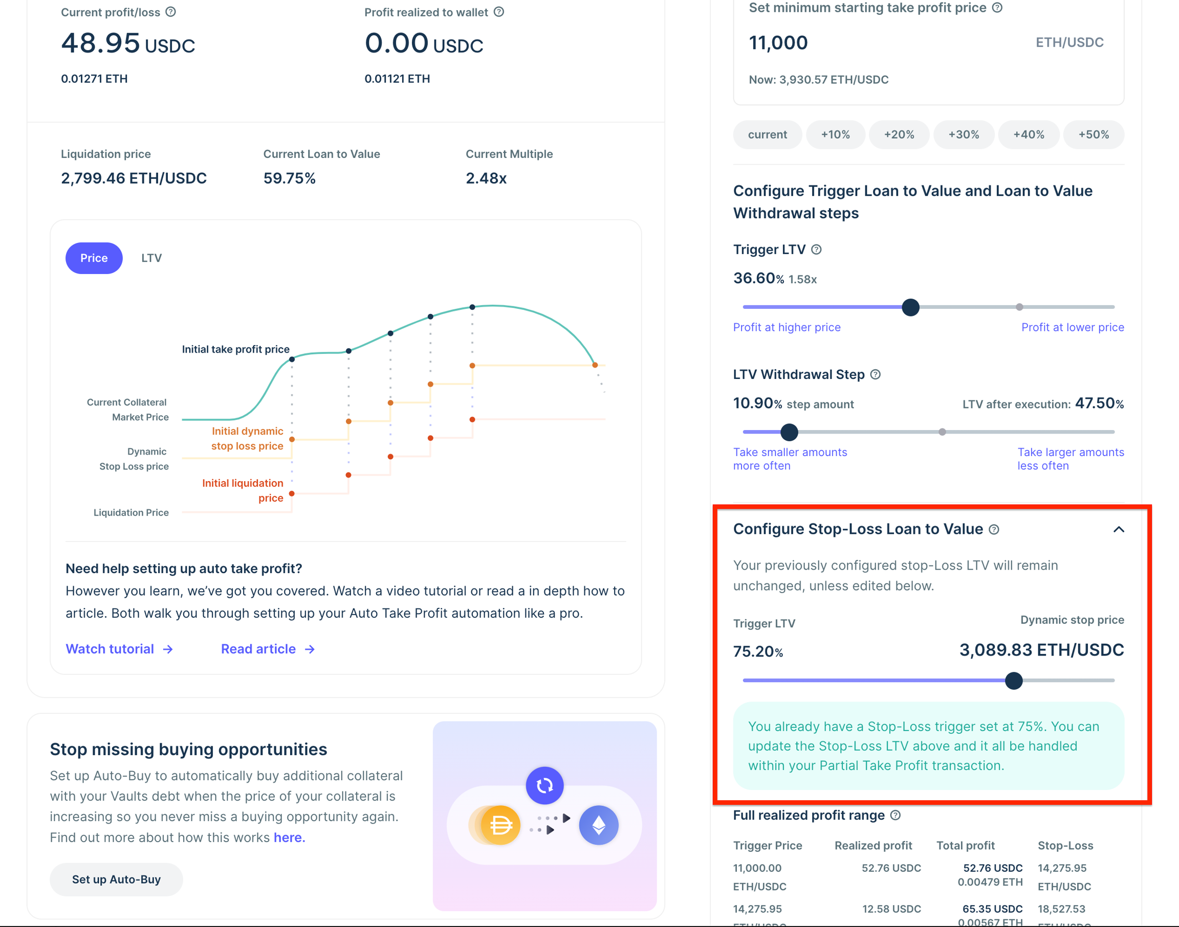 Stop Loss LTV - The LTV that once reached your position will be closed.