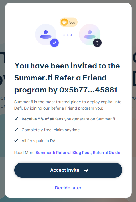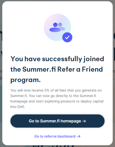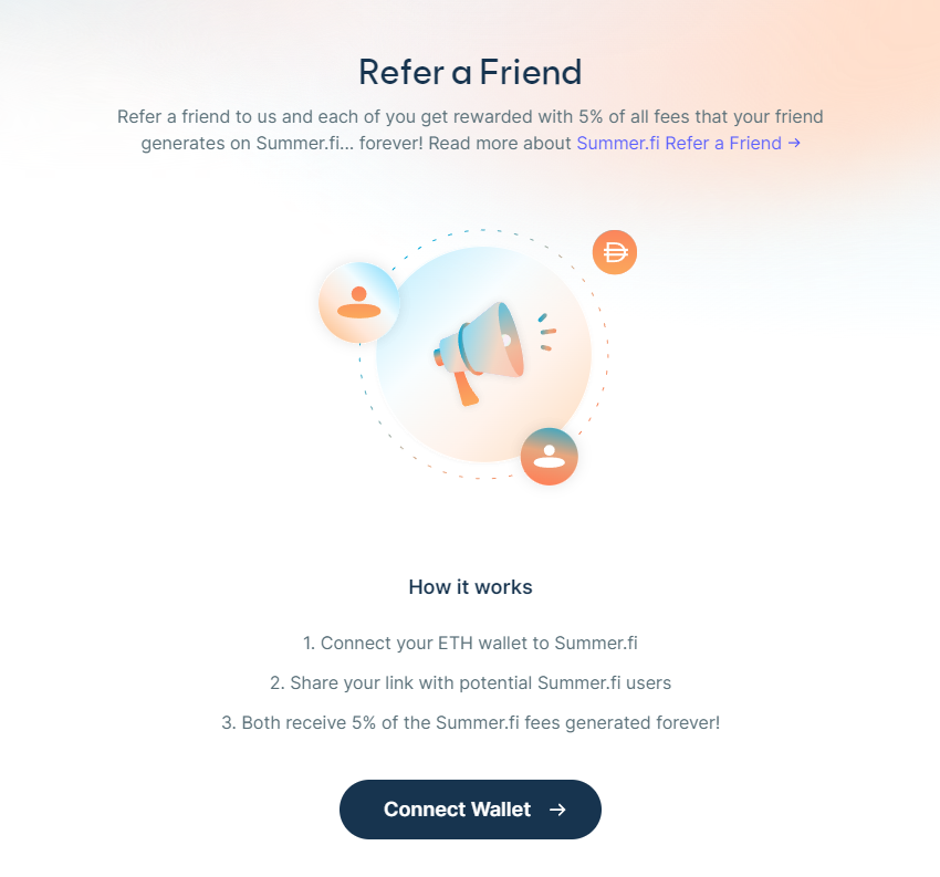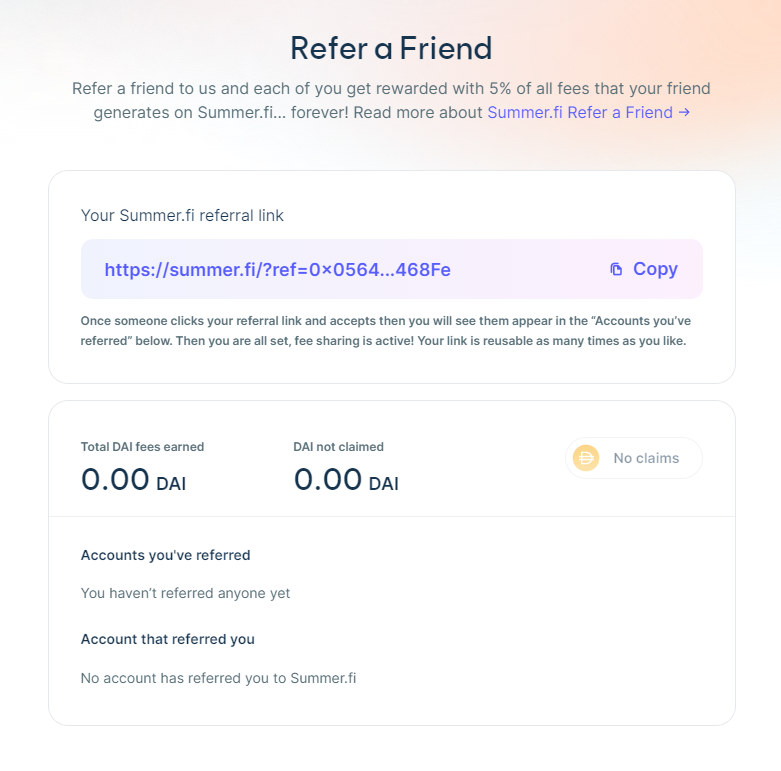 To refer your friends, visit Summer.fi, connect your wallet and visit the "Refer a Friend" control panel.